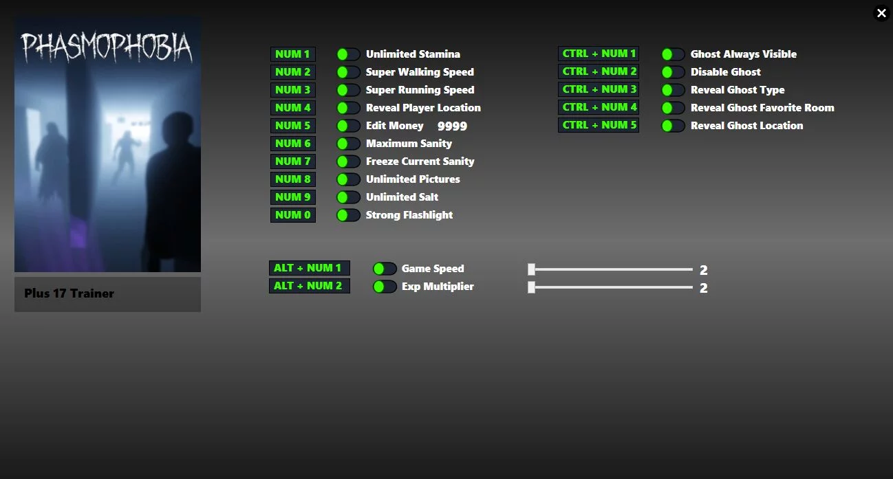 Num 1 — Неограниченная выносливость Num 2 — Суперскорость ходьбы Num 3 — Суперскорость бега Num 4 — Раскрыть местоположение игрока Num 5 — Редактировать деньги Num 6 — Максимальное здравомыслие Num 7 — Заморозить текущий уровень здравомыслия Num 8 — ...