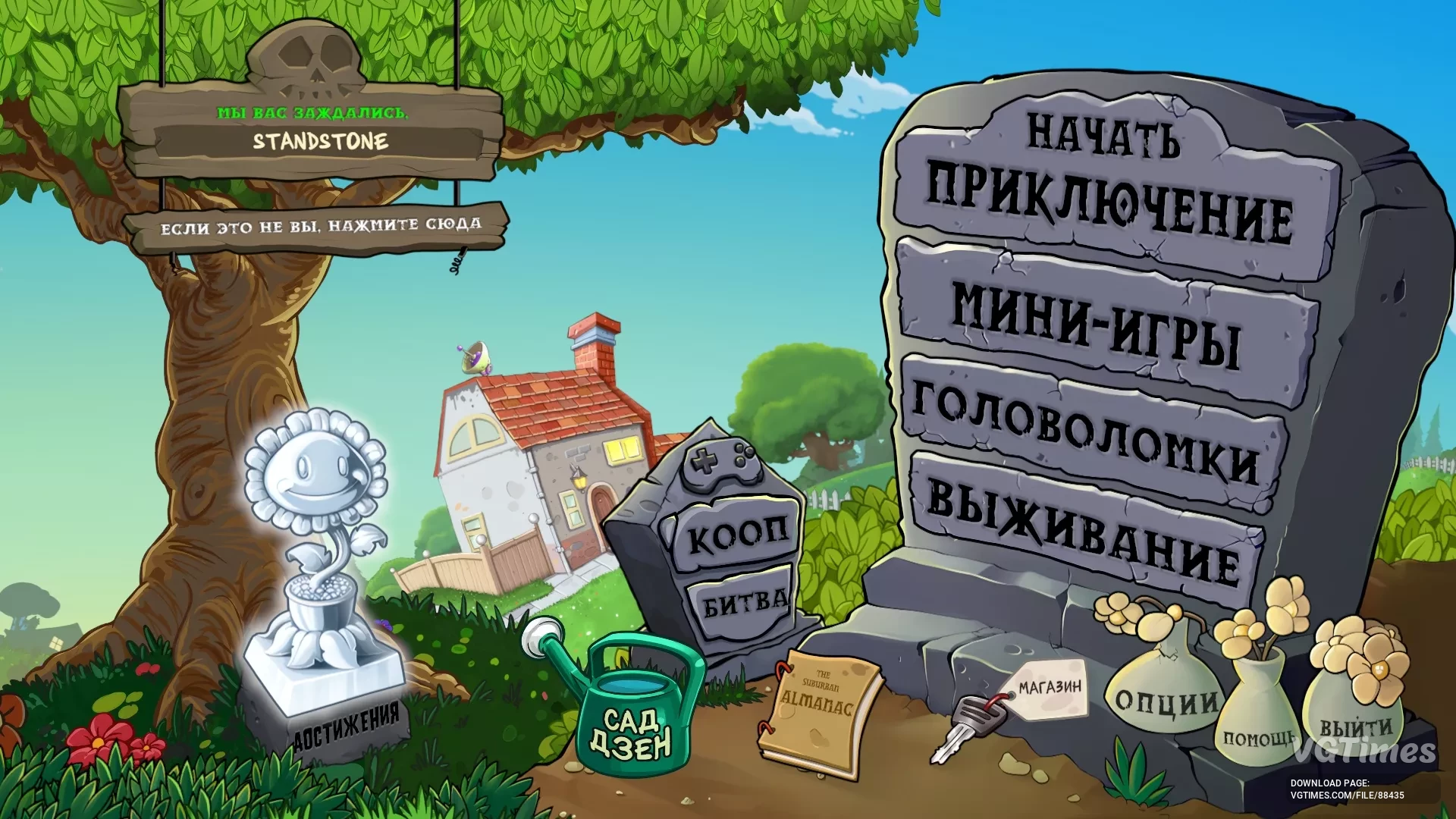 Переводит всю текстовую часть игры на русский язык. Что переведено: Весь интерфейс; Альманах с описанием растений и зомби; Все монологи Безумного Дэйва и советы Мудрого Древа; Все режимы игры, в том числе бонусные уровни, кооператив и сраже ...