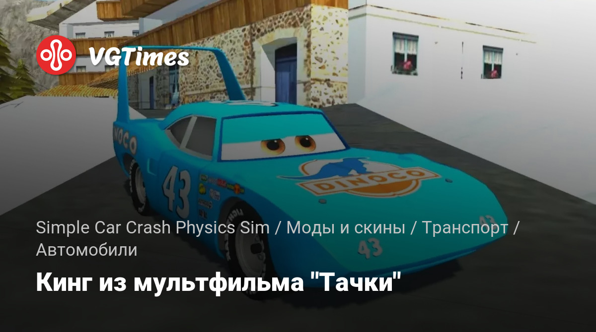 Мод добавляет в игру легендарного персонажа из мультфильма "Тачки" — Кинга (Strip Weathers), известного под номером 43 и фирменной раскраской Dinoco. Машина полностью повторяет внешний вид героя: голубой окрас, наклейки спонсоров и выразительные "глаза" на лобовом стекле. Благодаря этому моду можно прокатиться по знакомым трассам за рулём настоящей звезды гоночного мира из любимого мультфильма.