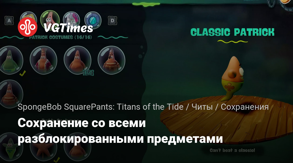 Игры SpongeBob SquarePants: Titans of the Tide Файлы Сохранения Сохранение со всеми разблокированными предметами