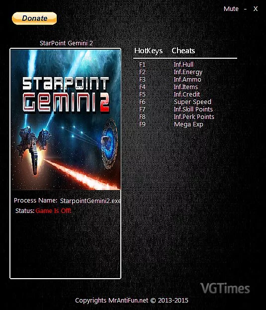 Автор: MrAntiFun Издание: Steam Версия Игры: v.1.9000 Язык Трейнера: Английский Количество Функций: 9 Дата Создания Трейнера: 12/11/2014 Горячие клавиши и возможности трейнера: F1:Inf.Hull — бесконечная броня корпуса F2:Inf.Energy - бе ...