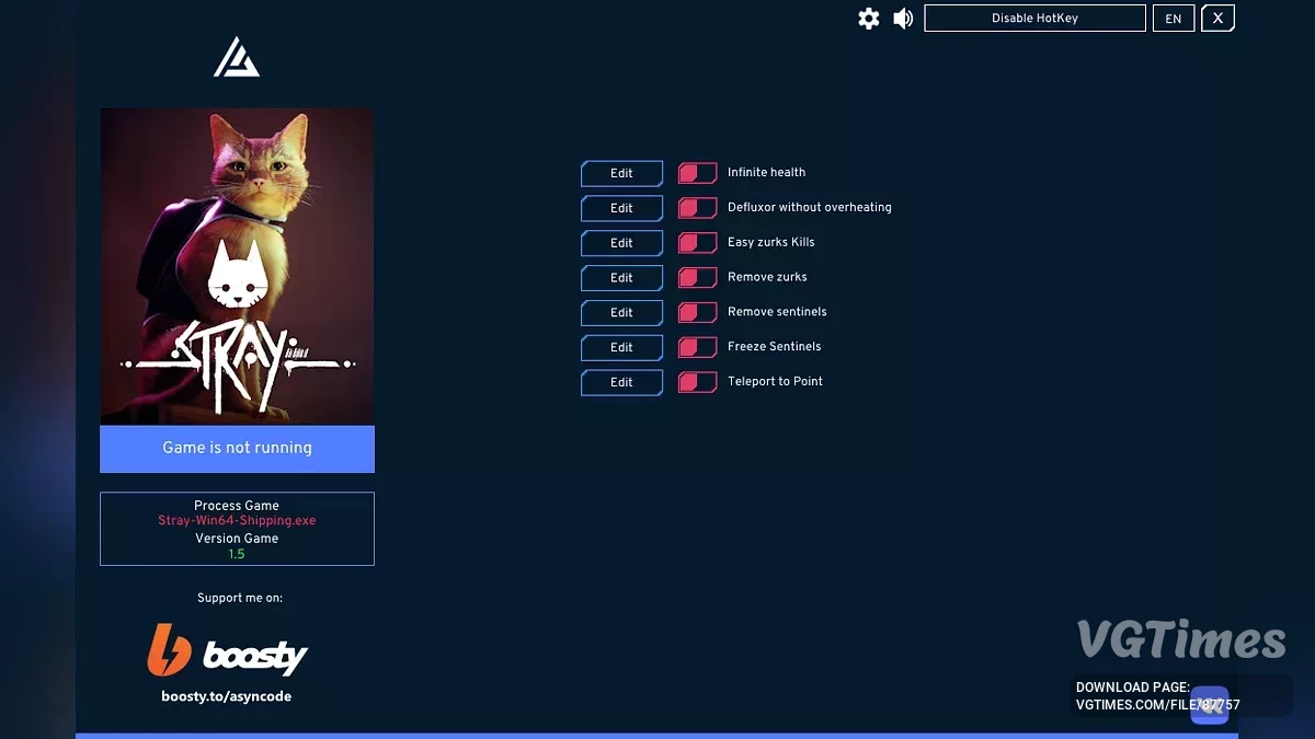 Функции и команды: F1 : Бессмертие. F2 : Дефлюксор без перегрева. F3 : Легкие убийства зурков. F4 : Убрать зурков. F5 : Убрать стражей. F6 : Заморозить стражей. F7 : Телепорт к точке (Сохранить позицию / Загрузить позицию). Фун ...