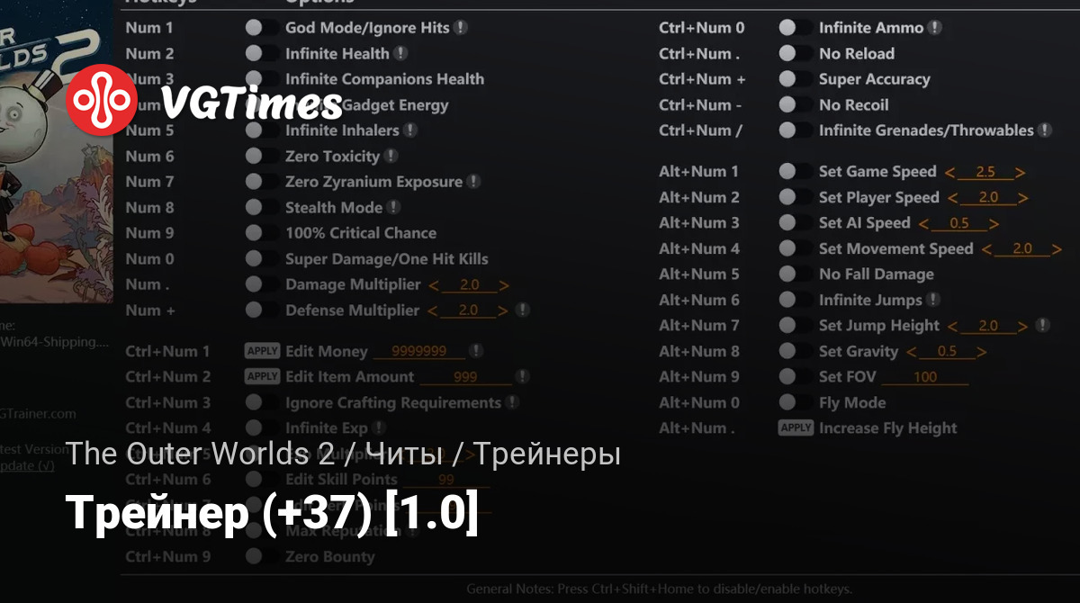 - Ctrl+Num / – Infinite Grenades/Throwables — Бесконечные гранаты/метательные предметы.