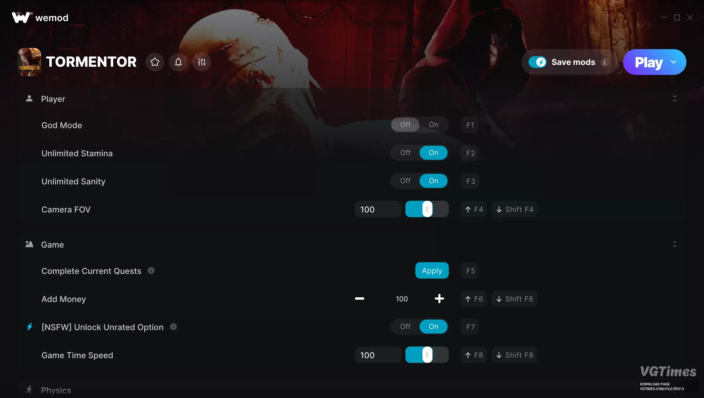 Функции и команды: God Mode — Режим бога. Unlimited Stamina — Бесконечная выносливость. Unlimited Sanity — Бесконечный рассудок. Camera FOV — Угол обзора камеры. Complete Current Quests — Завершить текущие задания. Add Money — Добавить де ...