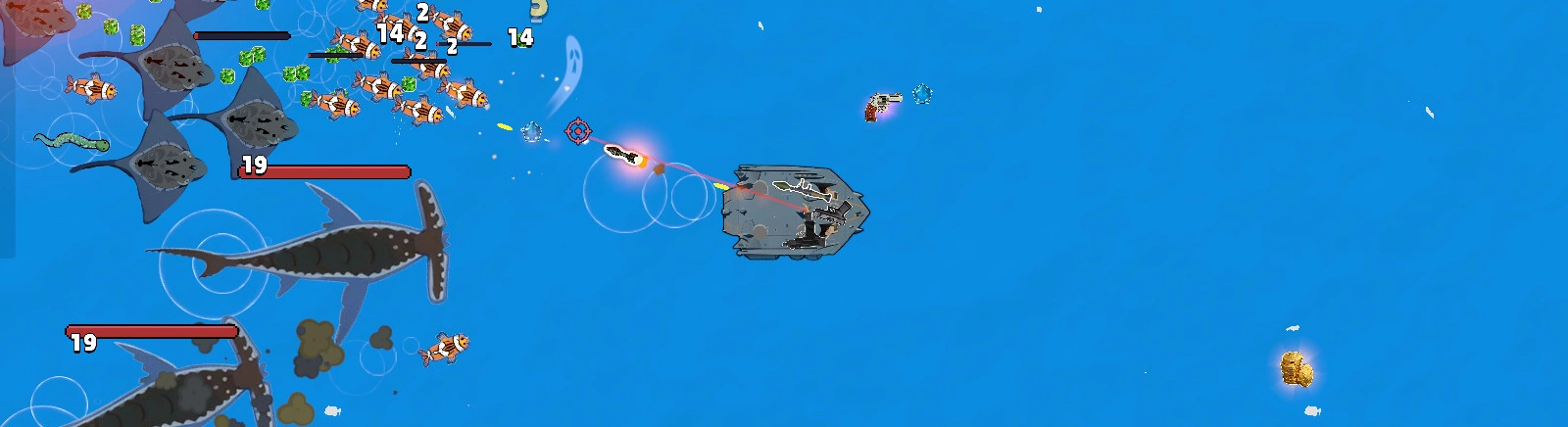 Действие игры разворачивается в открытом океане, где геймер управляет разными плавучими средствами — от скромного плота до полноценного линкора. Нужно сражаться с беспощадными ордами морских мутантов и улучшать свою огневую мощь. Помимо обычных противников есть элитные и чудовищные боссы из глубин.