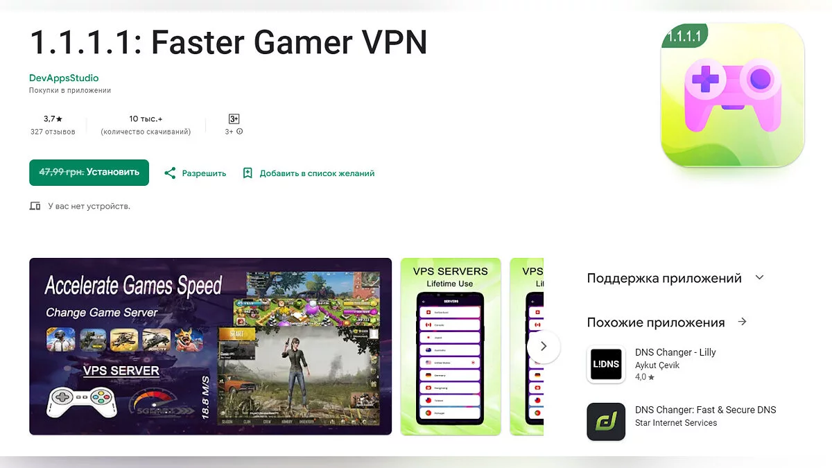 - 1.1.1.1: Faster Gamer VPN — программа с функцией VPN, предназначенная в первую очередь для геймеров. «Помогает выбрать серверы для игроков и получить лучшую скорость», — говорится в описании (загрузить бесплатно);