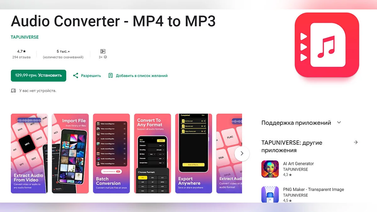 - Audio Converter — MP4 to MP3 — программа для конвертации видео в аудио и наоборот (загрузить бесплатно).