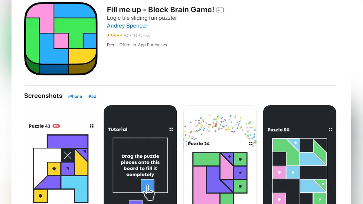 - Fill me up — Block Brain Game — головоломка, в которой нужно соединять различные фигуры (загрузить бесплатно).