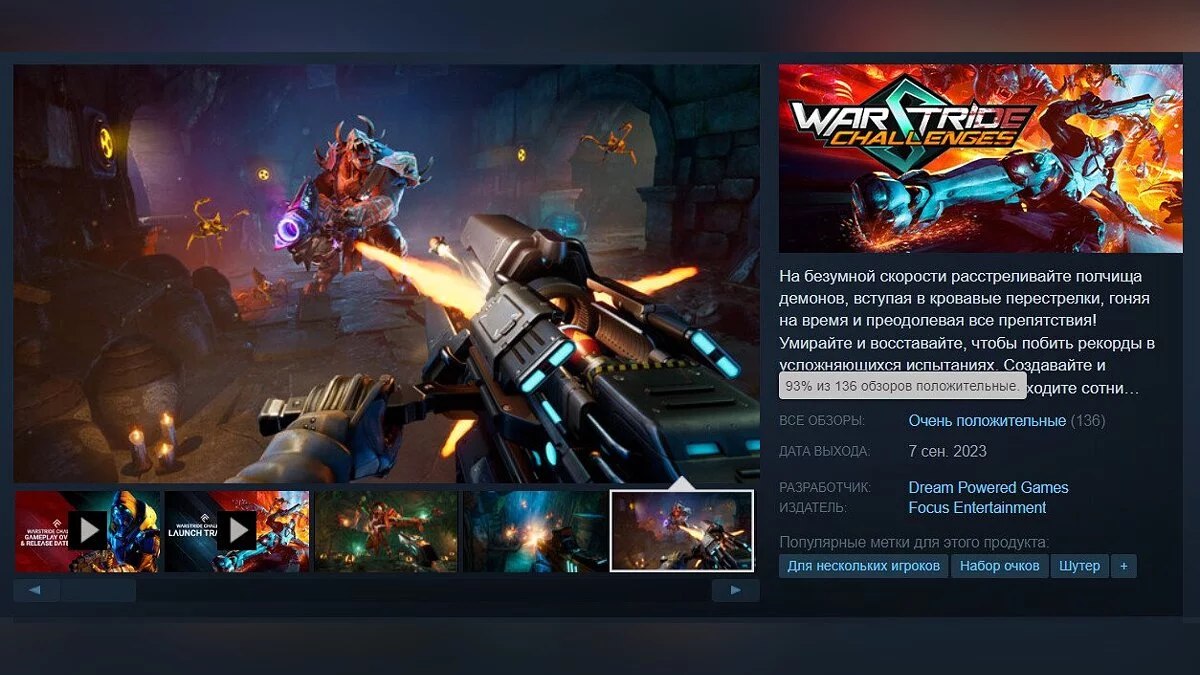 На PC и консолях состоялся релиз полной версии динамичного шутера от первого лица Warstride Challenges, который ранее был доступен в рамках раннего доступа в Steam. Проект имеет довольно высокий рейтинг — 93% на момент написания новости.