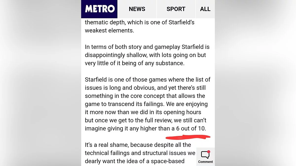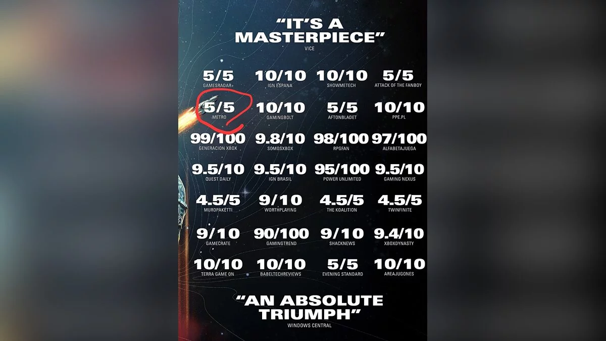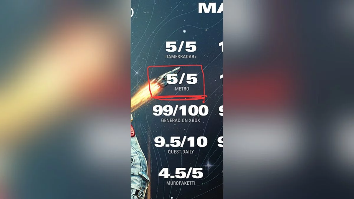 Оказалось, что издание Metro не ставило игре пять из пяти как указано на изображении. Вместо этого рецензент пока что оценил проект на шесть из десяти (обзор еще не завершен). Bethesda Softworks на момент написания новости не прокомментировала ситуацию.
