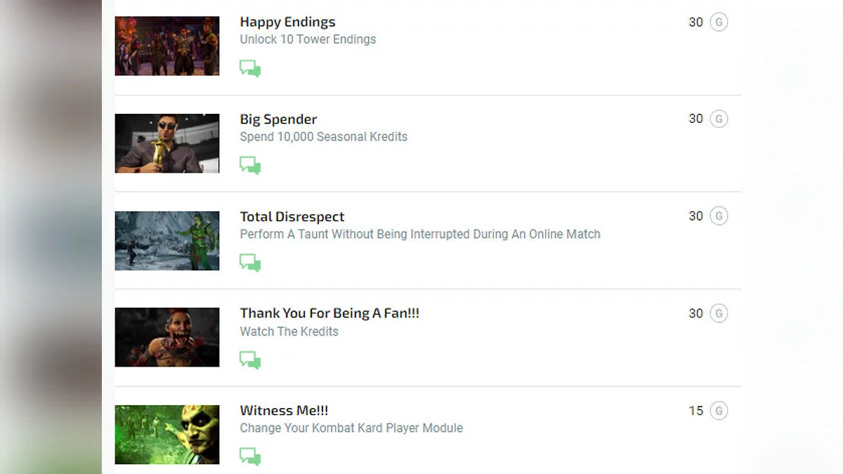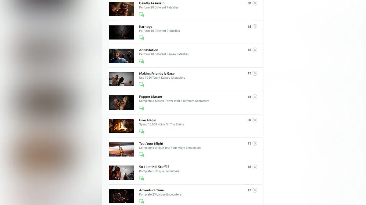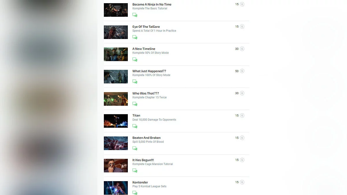 Кроме того, на сайте Xbox Achievements опубликовали список достижений. Многие из них завязаны на выполнении фаталити и прохождении сюжетной кампании.