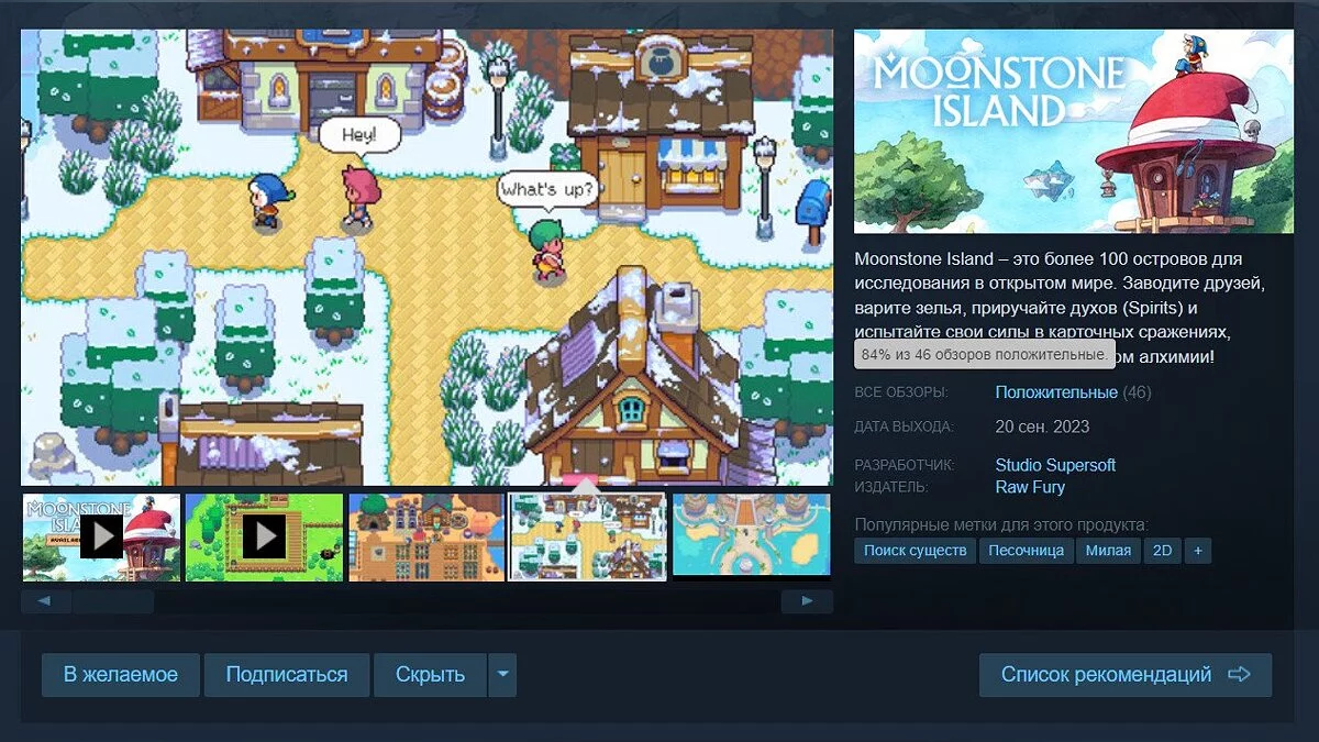 Компания-издатель Raw Fury и студия-разработчик Supersoft выпустили в Steam песочницу с открытым миром под названием Moonstone Island. В первый же день она получила положительные отзывы. Так, к примеру, ее рейтинг на момент написания новости составляет 84%.