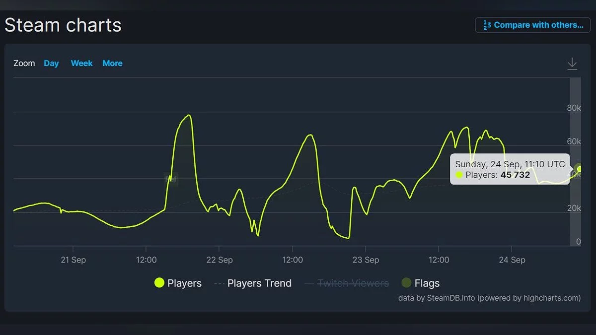 На момент написания новости у Payday 3 в Steam всего 33% положительных отзывов. При этом количество игроков в онлайне составляет около 40-45 тыс за 24 сентября.