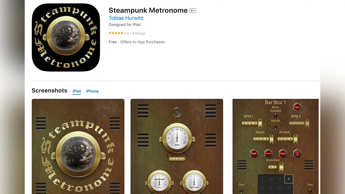 - Steampunk Metronome — цифровой метроном, выполненный в старинном стиле (загрузить бесплатно);