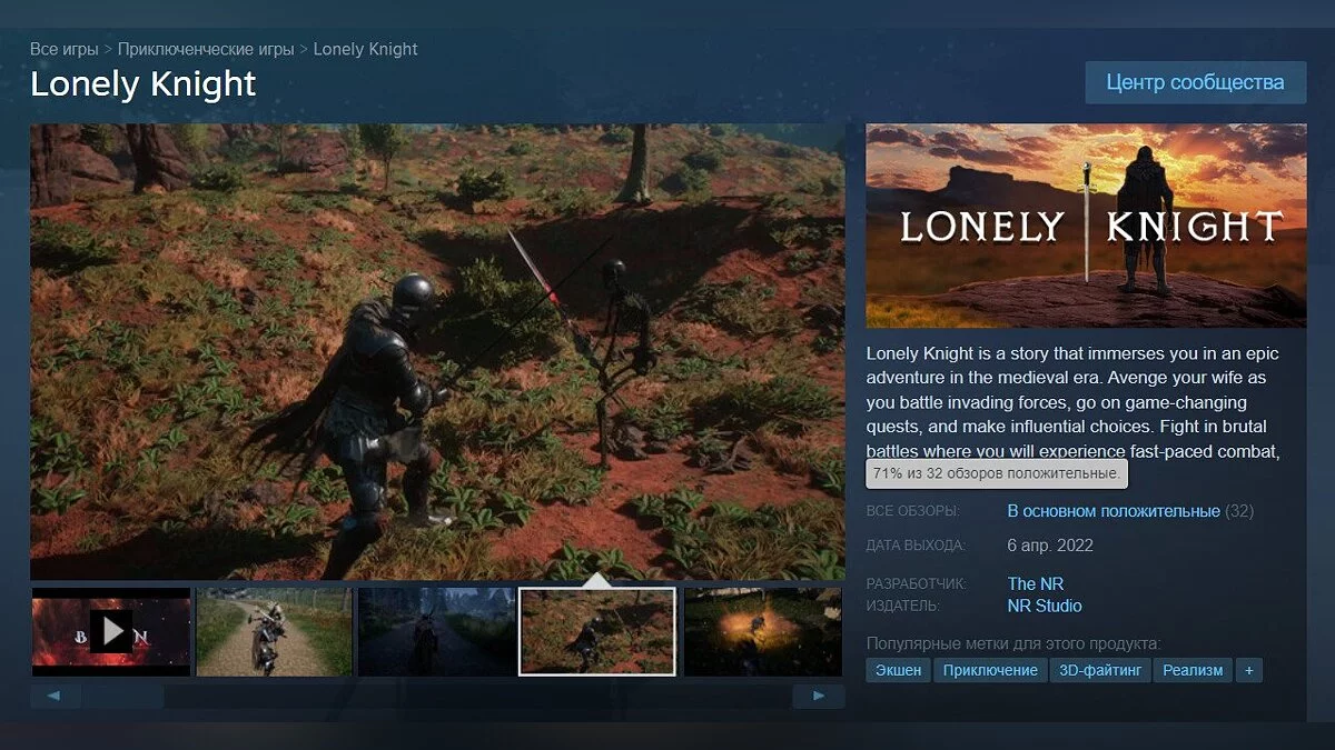 На днях разработчики из NR Studio перевели свой средневековый экшен от третьего лица Lonely Knight на полностью бесплатную модель распространения в Steam. Раньше игра продавалась за 420 руб.