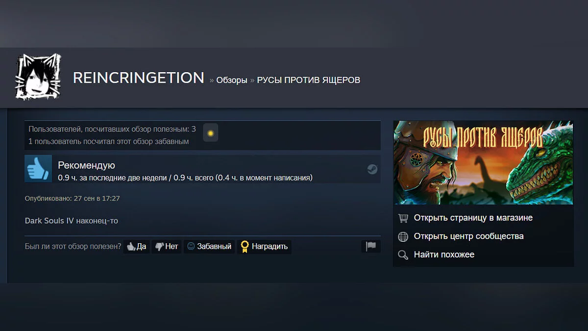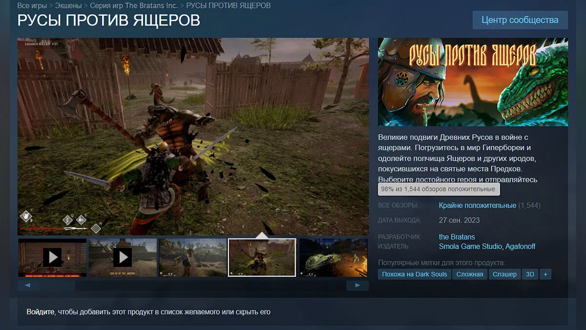 Российская студия the Bratans выпустила в Steam средневековый экшен от третьего лица под названием «Русы против ящеров». В первый же день он получил свыше 1,5 тыс отзывов, большинство из которых положительные.