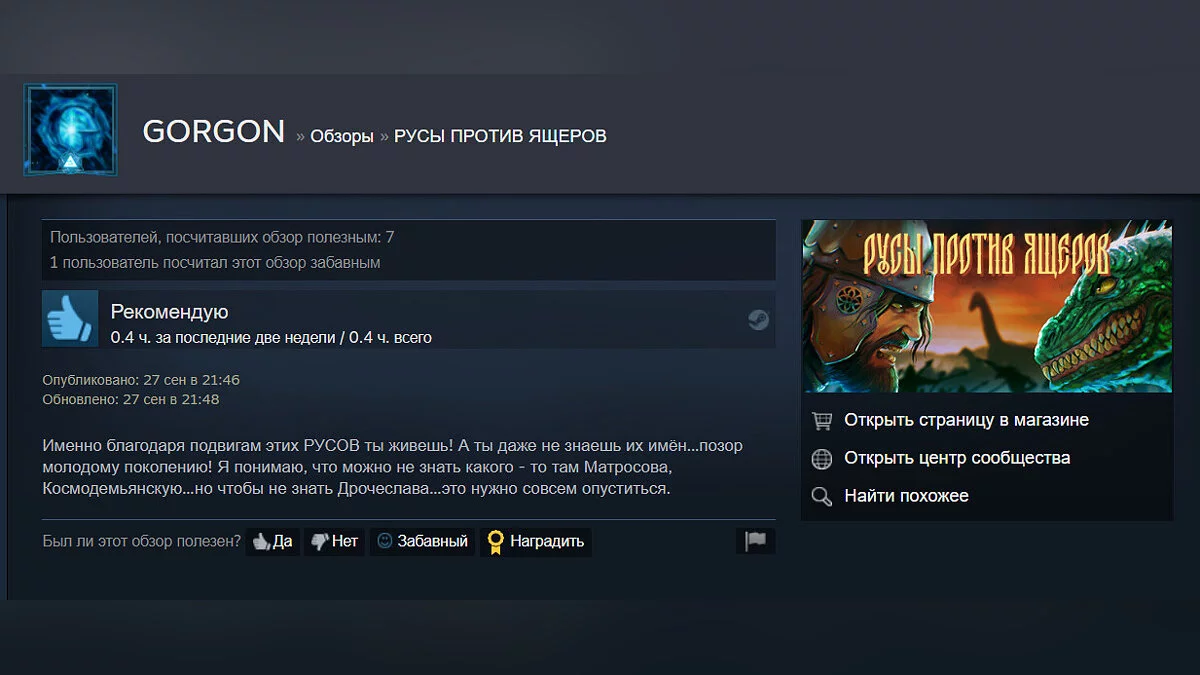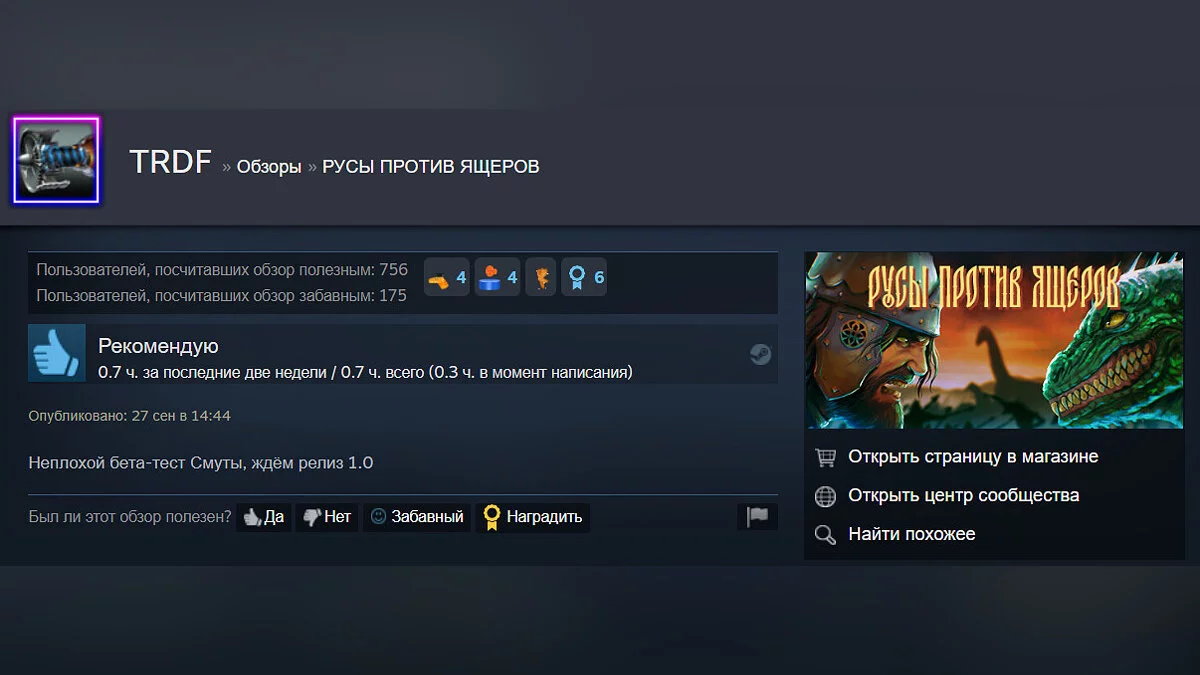 В Steam вышла игра про Русь за 37 руб, которая сразу стала хитом и получила рейтинг 98%