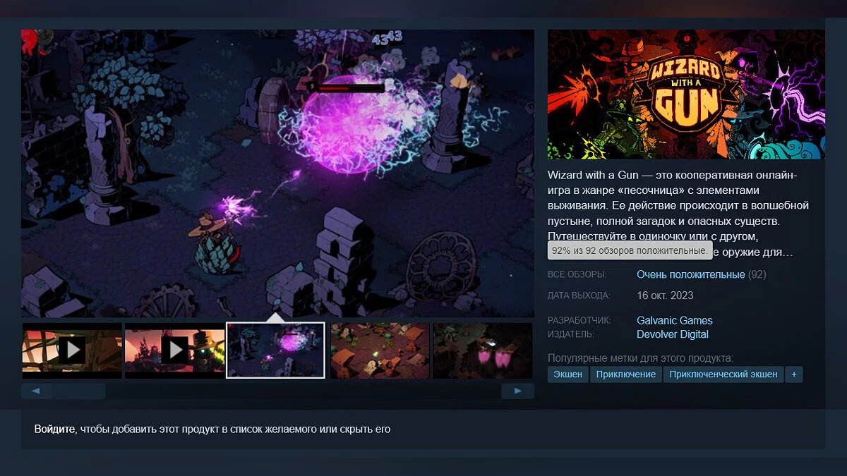 Купить Wizard with a Gun в Steam можно за 880 руб. Сегодня (17 октября) игра также появится на PS5 и Xbox Series X/S.
