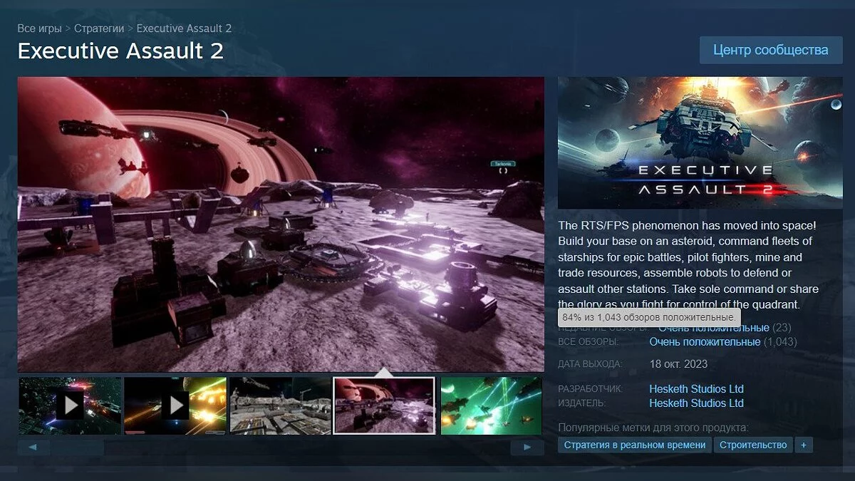 В Steam состоялся выход полной версии космической игры Executive Assault 2, которая представляет собой смесь шутера от первого лица и стратегии в реальном времени. Проект пробыл в раннем доступе ровно пять лет и получил за это время более тысячи отзывов (рейтинг 84%).