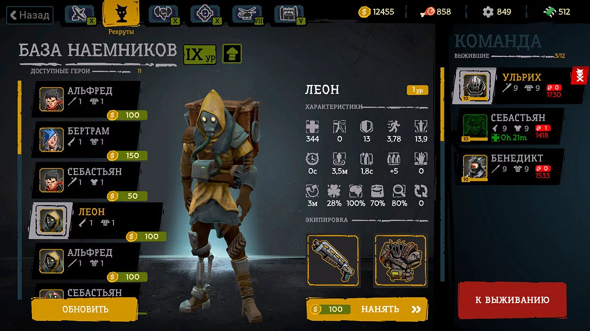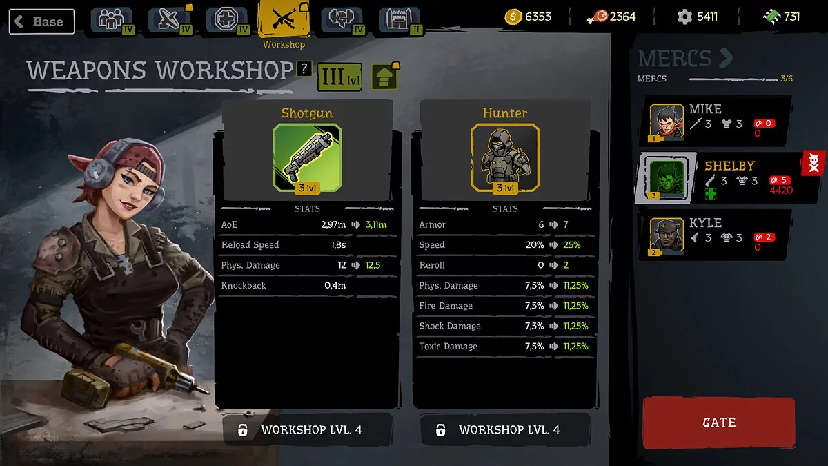 «Развивай базу выживших, чтобы получить улучшения. Прокачивай наемников в тренировочном центре, нанимай новых головорезов в здании рекрутов, а также модифицируй оружие и броню в мастерской. Улучшенные строения увеличивают шансы на спасение», — говорится в описании.