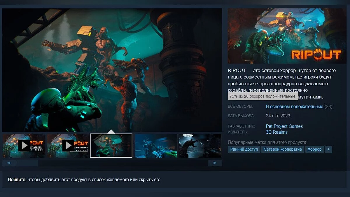 Компания-издатель 3D Realms и студия-разработчик Pet Project Games выпустили в раннем доступе Steam фантастический шутер с элементами хоррора в духе Doom 3 под названием RIPOUT, который уже получил первые отзывы от геймеров.
