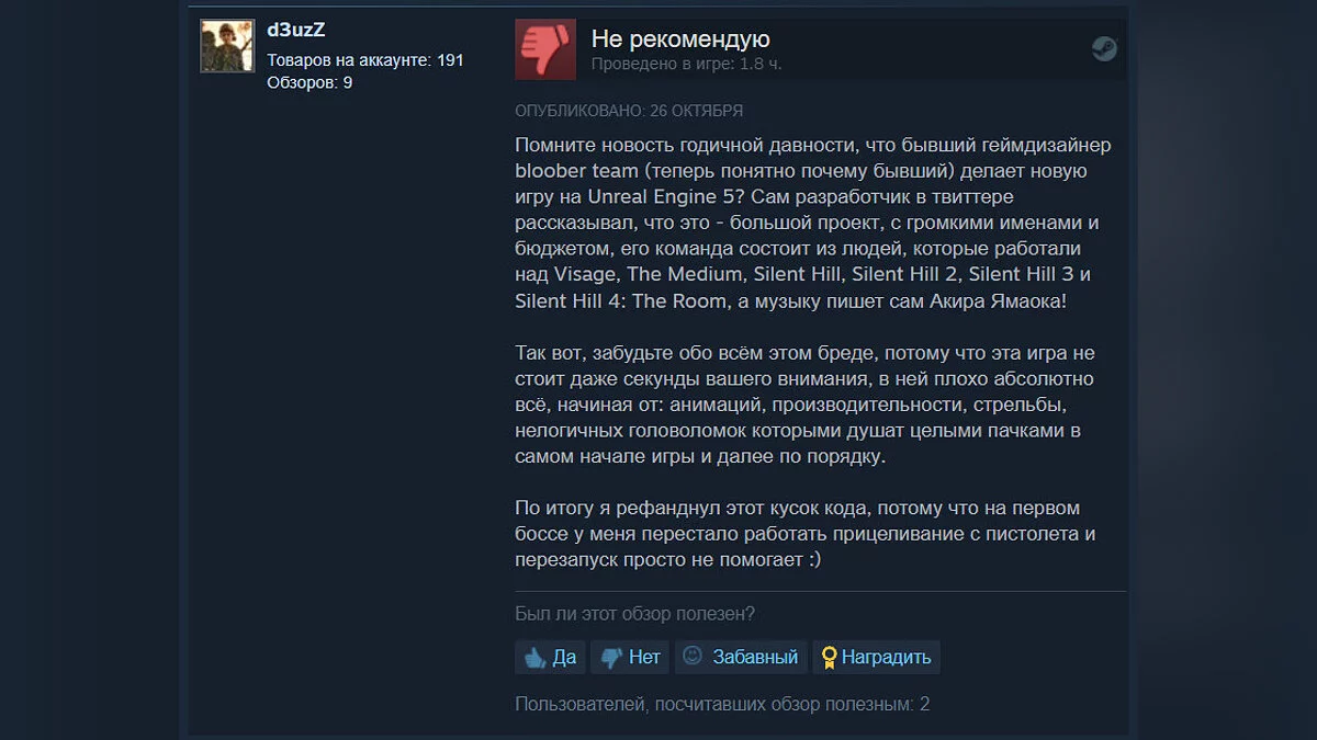 В Steam вышел хоррор на выживание, над музыкой которого работал Акира Ямаока. Геймеры сильно раскритиковали игру