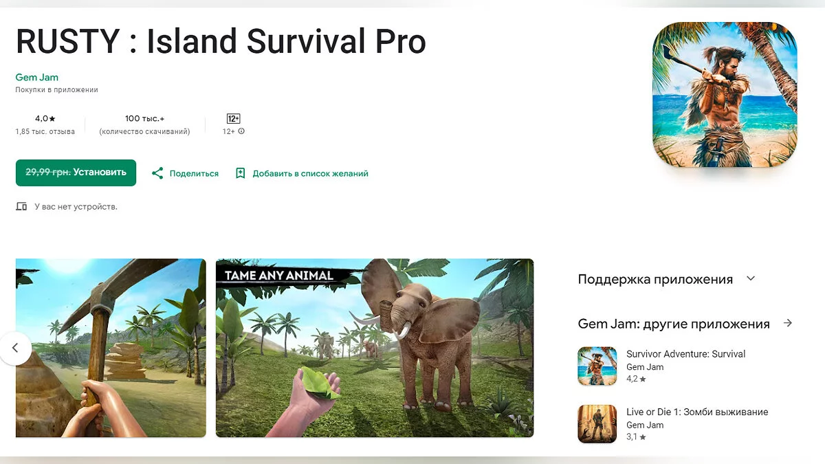 - RUSTY: Island Survival — симулятор выживания с открытым миром, в котором игрок оказывается на таинственном острове с дикими животными. Ему предстоит крафтить предметы, строить убежище и искать припасы (загрузить бесплатно);