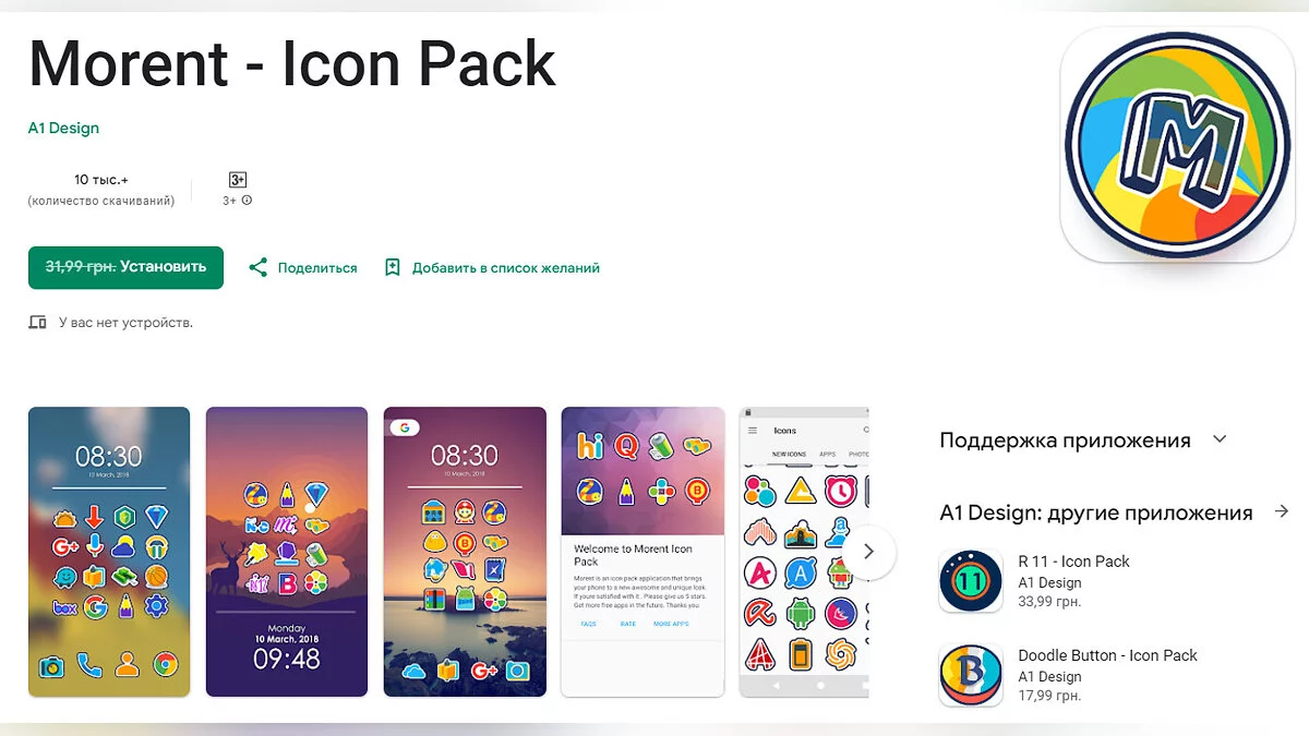 - Morent — набор разноцветных иконок с ярким дизайном (загрузить бесплатно);