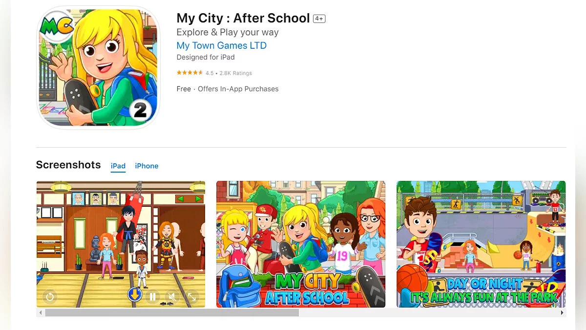 - My City: After School — детская аркадная игра, в которой геймерам предстоит заниматься различными вещами после школы (катание на коньках, чтение, уроки каратэ и многое другое) (загрузить бесплатно);
