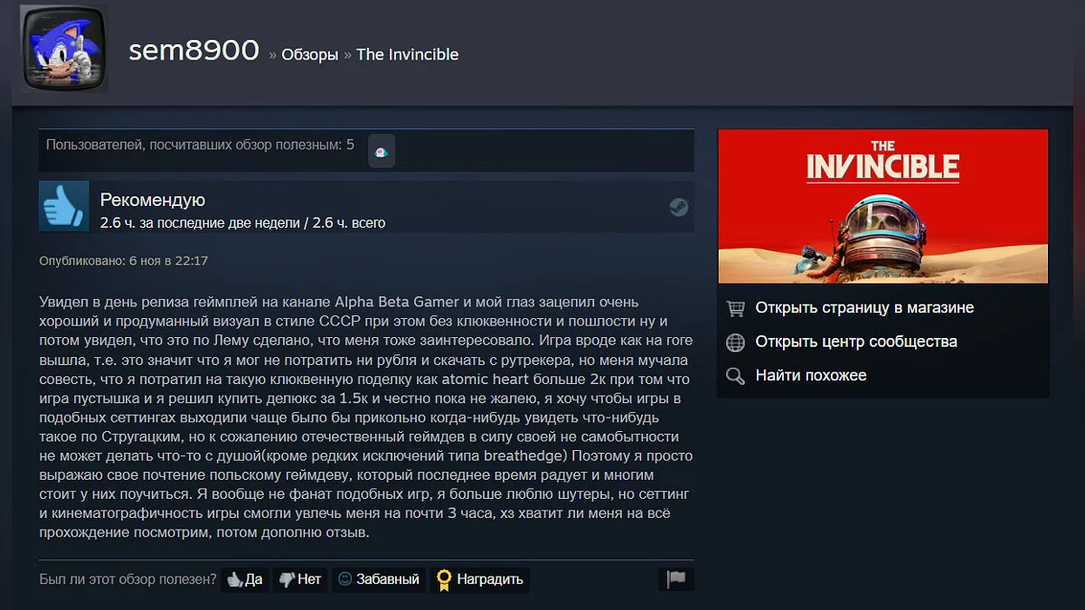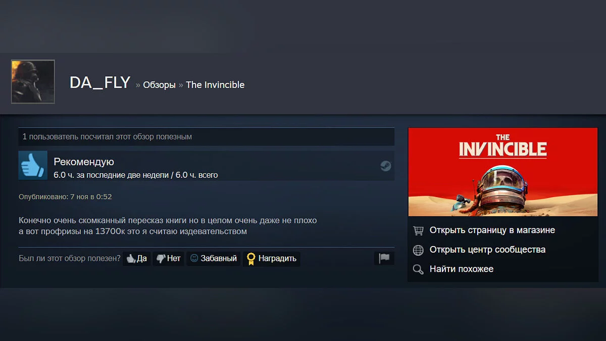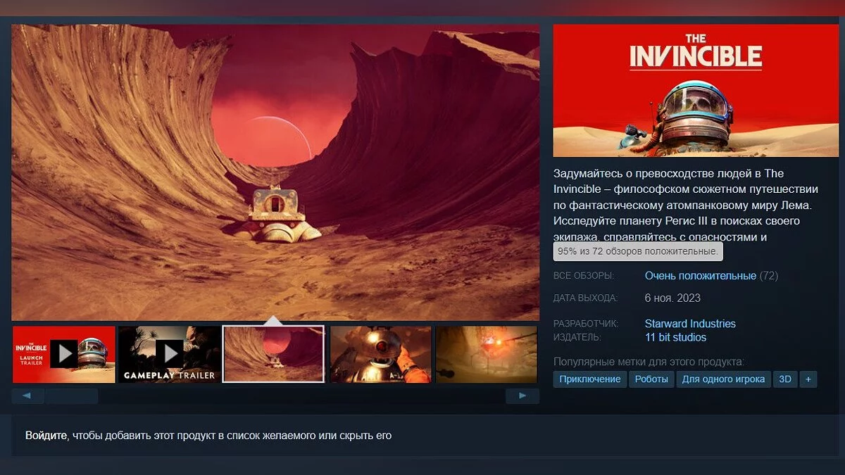 В Steam The Invincible продается за 1199 руб. Игра также доступна в Epic Games Store, GOG, PS Store (PS5) и Xbox Store (Xbox Series X/S).