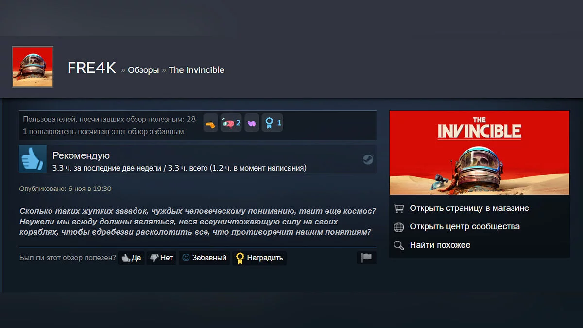 «Непонятно, но очень интересно» и «Диалоги топ» — игра The Invincible получила 95% положительных отзывов в Steam