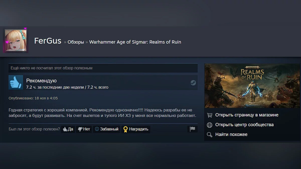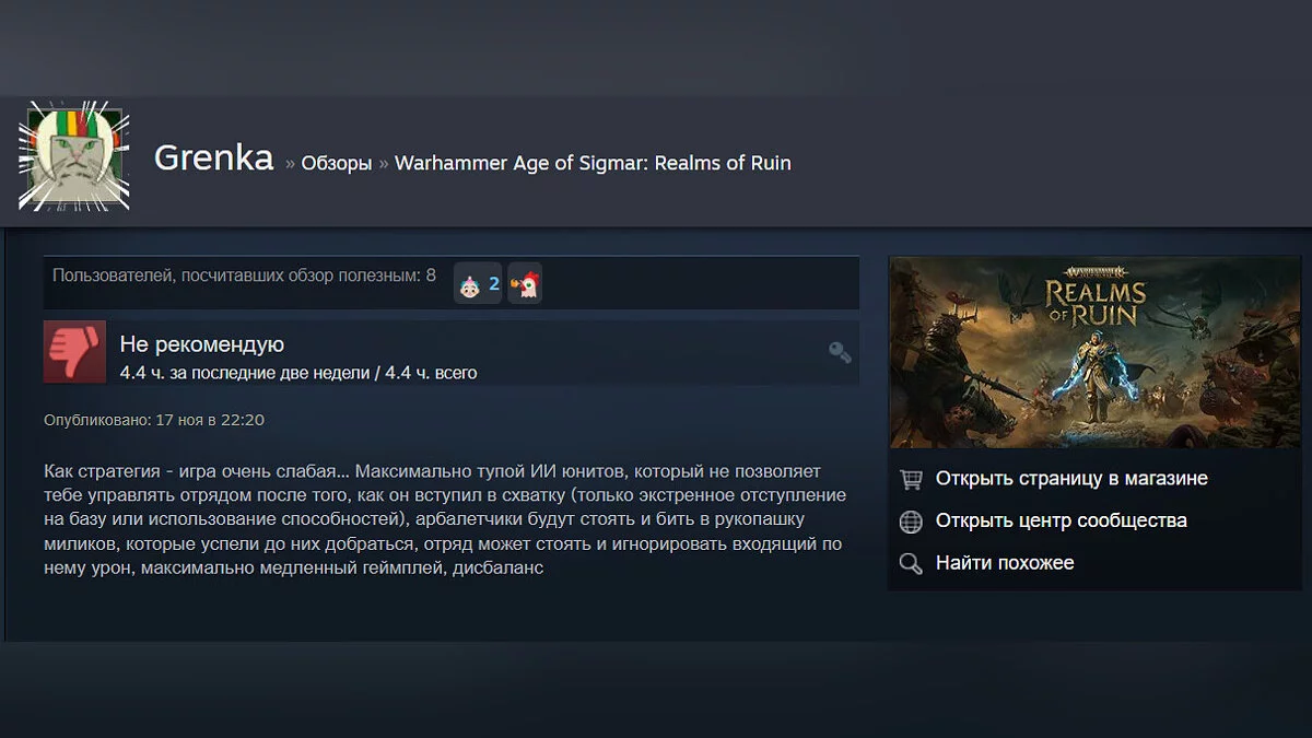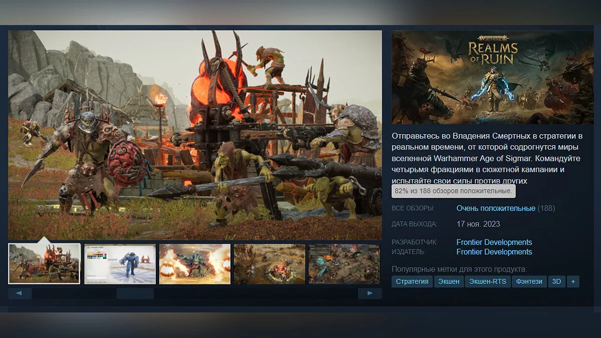 Вчера (17 ноября) компания Frontier Developments выпустила на PC и консолях стратегию в реальном времени Warhammer Age of Sigmar: Realms of Ruin. В Steam проект получил очень положительные отзывы.