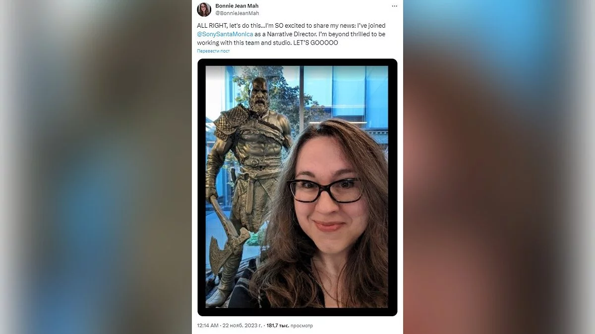 В Sony Santa Monica она получила должность нарративного директора. «Я хочу поделиться своими новостями: я присоединилась к Sony Santa Monica в качестве нарративного директора. Я очень рада работать с этой командой и студией», — написала Бонни Джин Ма на своей страничке в X (Twitter).