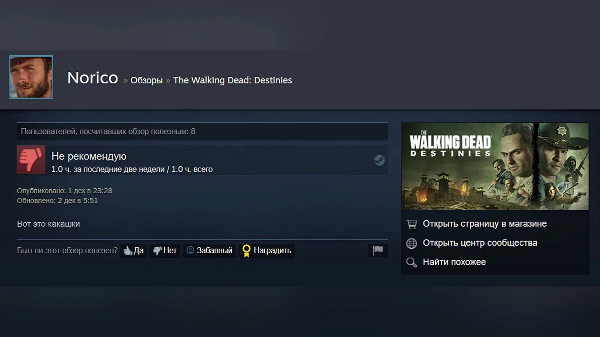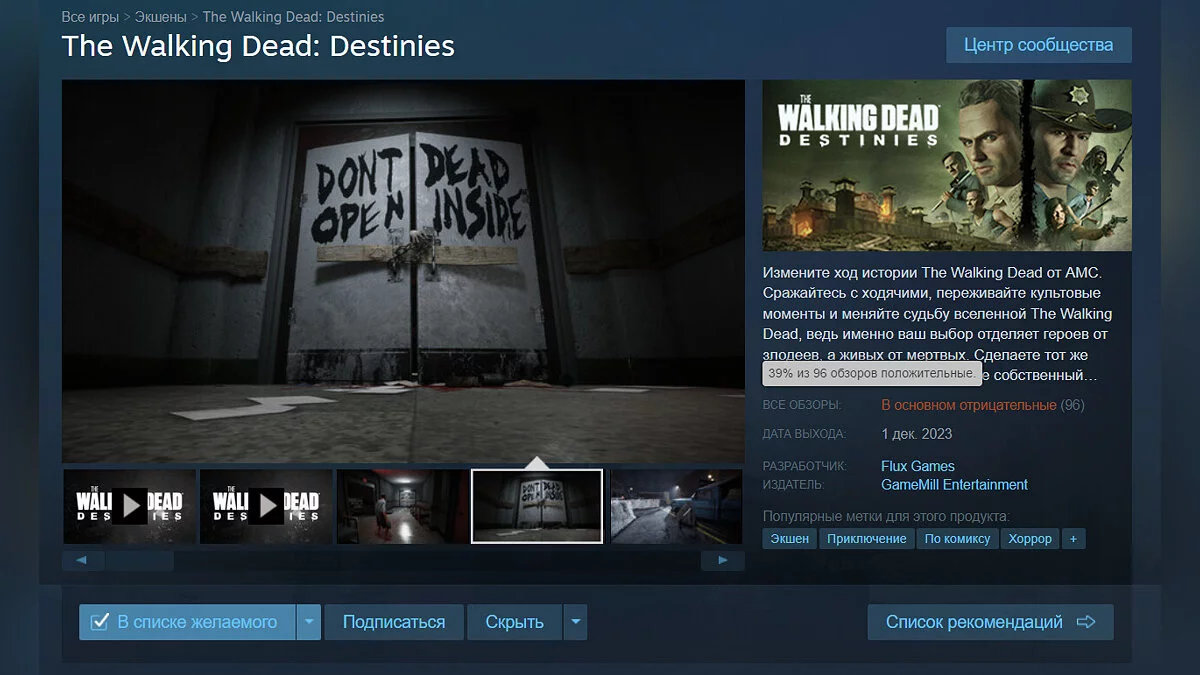 Купить The Walking Dead: Destinies в Steam можно за 1280 руб с учетом скидки 20% (действует до 15 декабря). Напомним, ранее состоялся консольный релиз, который также вызвал много отрицательных реакций.