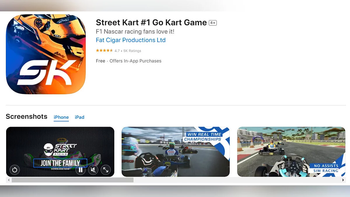 - Street Kart #1 Go Kart Game — автосимулятор, в котором игрокам нужно управлять гоночными картами (загрузить бесплатно).