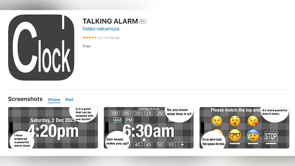 - TALKING ALARM — говорящий будильник с набором функций, позволяющих настроить способ отключения (загрузить бесплатно);