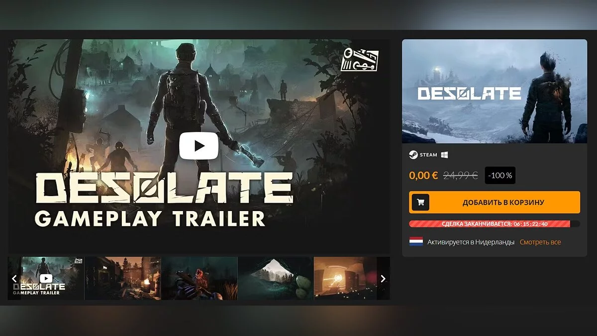 Для Steam стартовала новая бесплатная раздача игры. На этот раз геймеры могут забрать российский выживач с элементами хоррора и открытым миром под названием Desolate, который разработала студия Nearga.