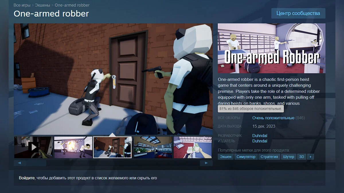 Добавить One-armed robber в свою библиотеку Steam можно здесь.