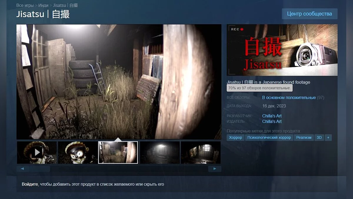 В Steam вышел новый психологический хоррор от первого лица под названием Jisatsu, разработкой которого выступила инди-студия Chilla's Art, специализирующаяся на ужастиках. Первые отзывы от геймеров — в основном положительные.
