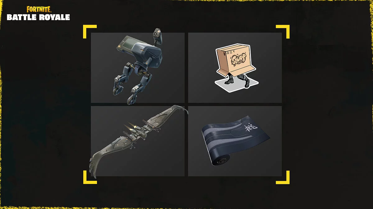 Что касается экипировки Снейка, в игре можно использовать знаменитую коробку для стелса и ЭМИ-устройство. Также появились новая эмблема, экран загрузки, украшение на спину Metal Gear Mk. II, эмодзи («Прячешься?»), дельтаплан «Слайдер», обёртка «Кожа Снейка» и ракетница «Сто пудов».