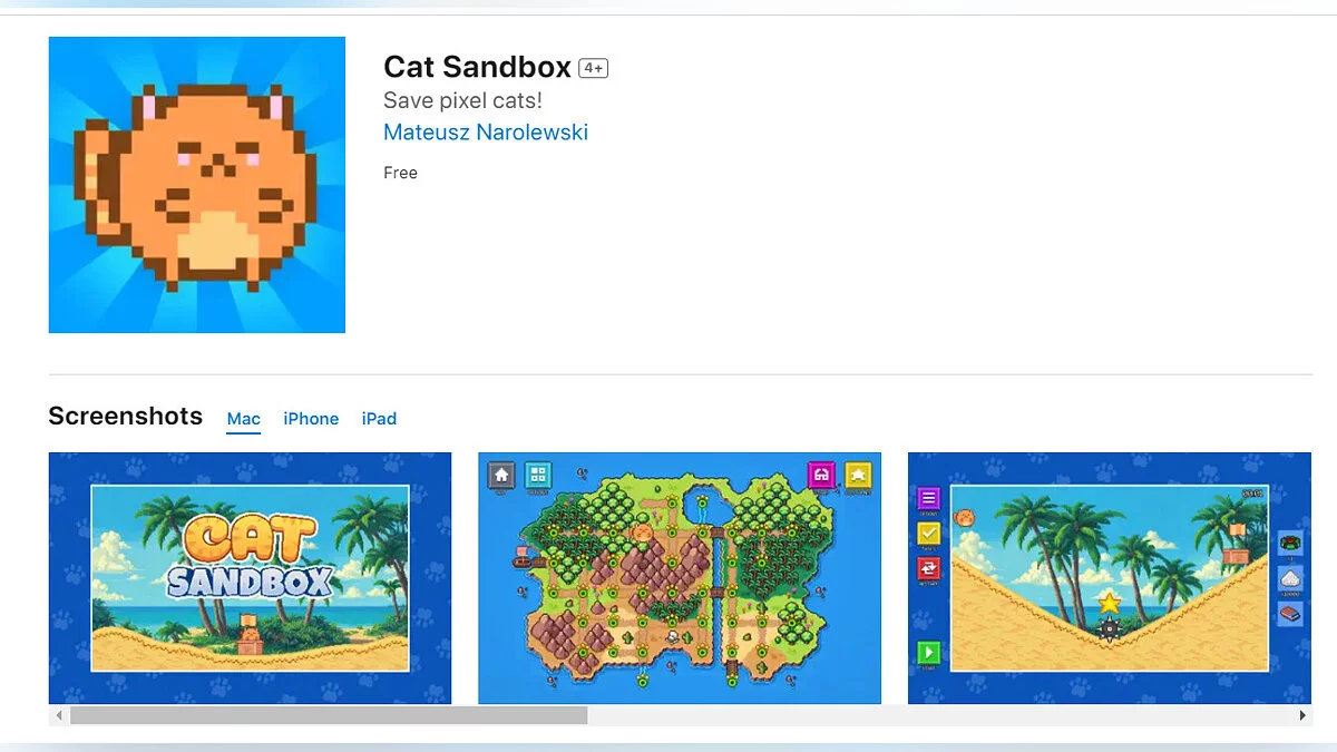 - Cat Sandbox — пиксельная приключенческая песочница про милого котика (загрузить бесплатно);