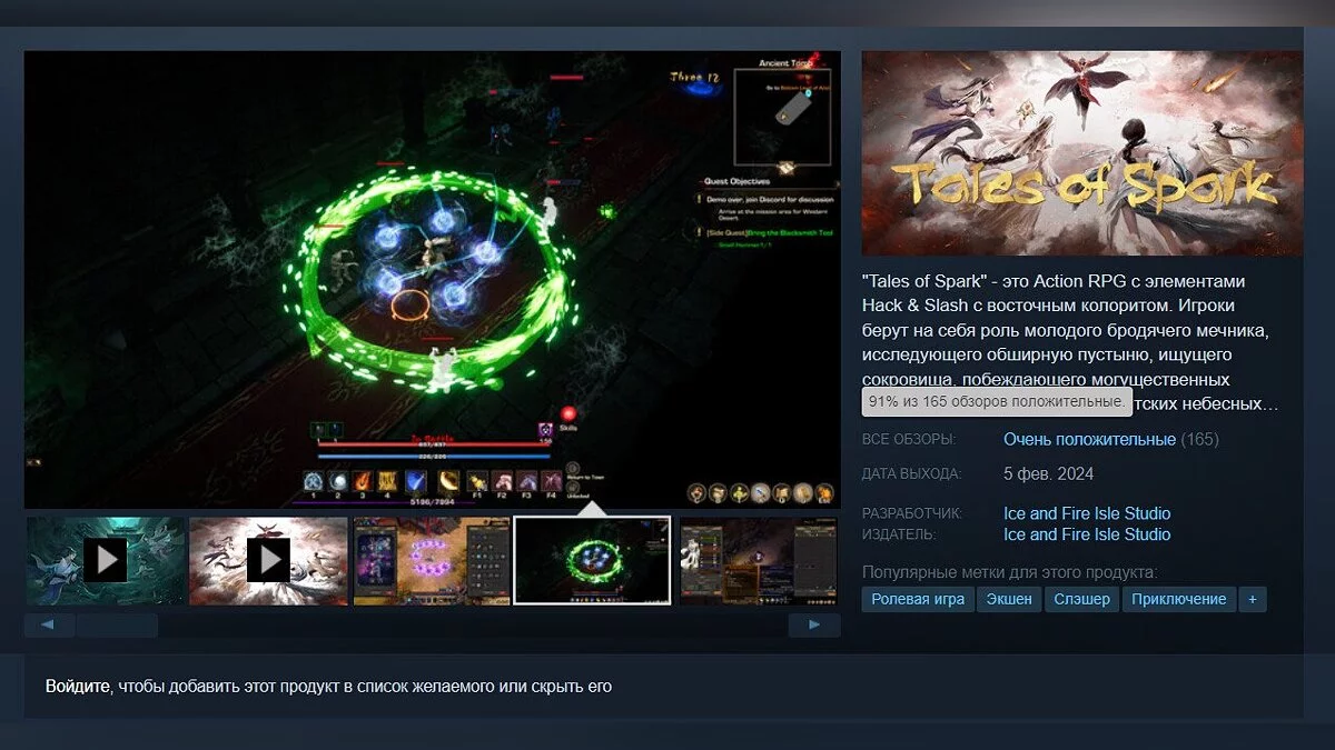 В раннем доступе Steam вышла изометрическая Action/RPG в духе Diablo под названием Tales of Spark. За первые сутки проект получил очень положительные отзывы. Сейчас его рейтинг составляет 91%.
