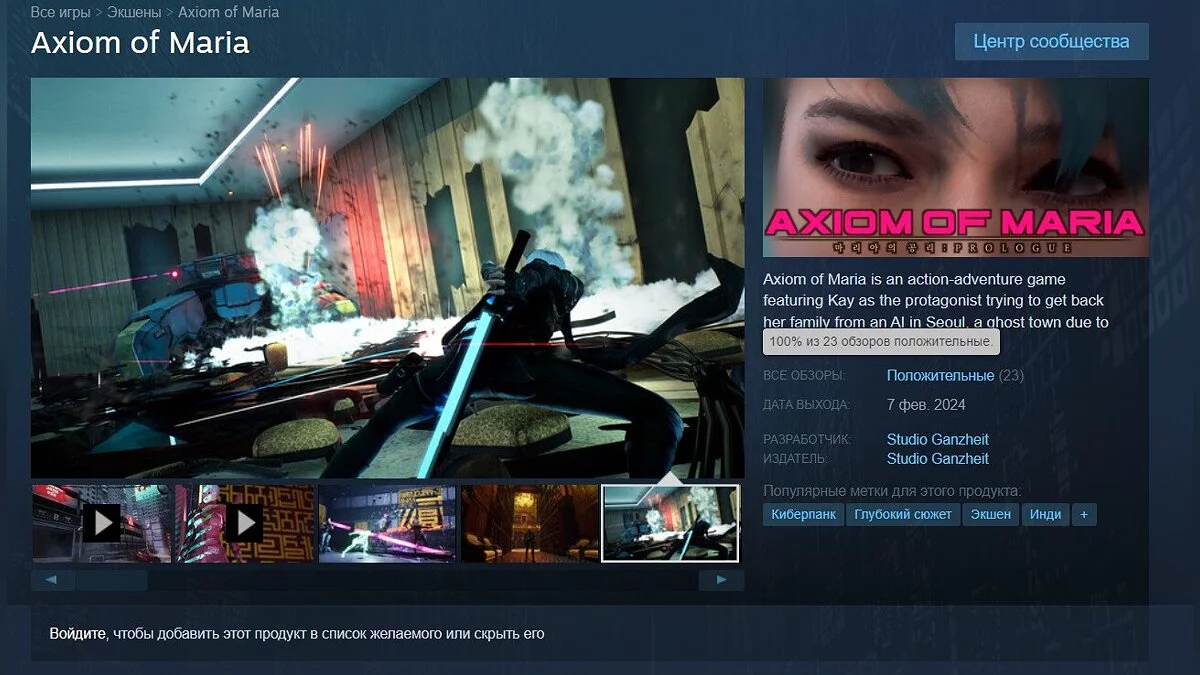 В Steam состоялся релиз приключенческого киберпанк-экшена от третьего лица Axiom of Maria, который ранее находился в раннем доступе. На момент написания новости рейтинг проекта составляет 100%.