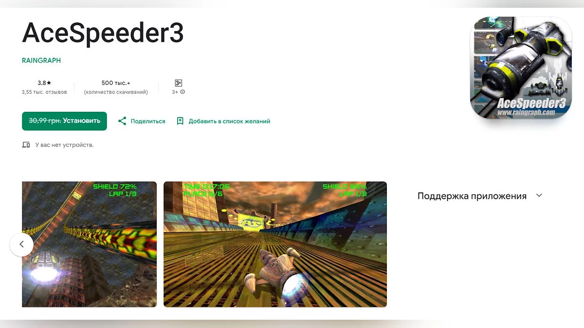 - AceSpeeder3 — гоночная аркада, где в качестве основных транспортных средств выступают футуристические болиды (загрузить бесплатно).