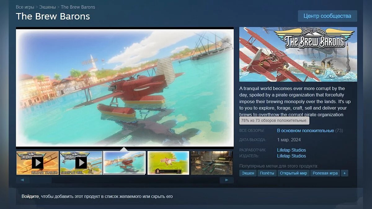 «Управляя собственной пивоварней и гидросамолетом, вы сможете исследовать мир, добывать ресурсы, изготавливать, продавать и доставлять приготовленное вручную пиво с помощью коллег-пилотов, которые присоединились к вашему делу, чтобы свергнуть коррумпированную пиратскую организацию и восстановить мир», — говорится в описании.