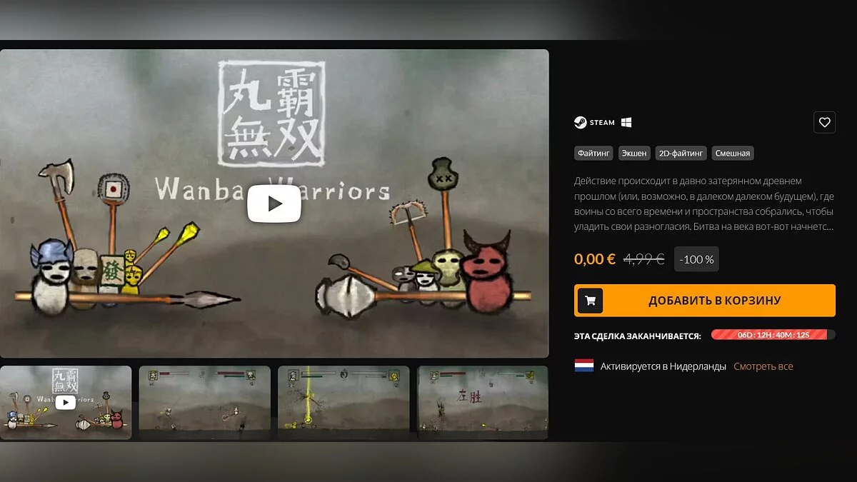 Для Steam стартовала новая бесплатная раздача, которая проходит в сервисе Fanatical. В течение ограниченного времени геймеры могут забрать необычный файтинг Wanba Warriors, который получил 91% положительных отзывов.