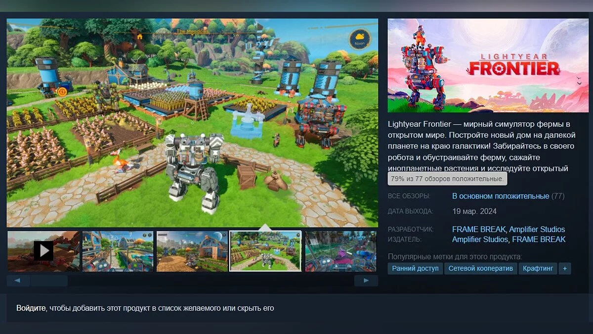 Купить Lightyear Frontier в Steam можно за 704 pуб с учетом скидки 20% (действует до 30 марта). Игра также доступна на Xbox Series X/S (входит в Game Pass).