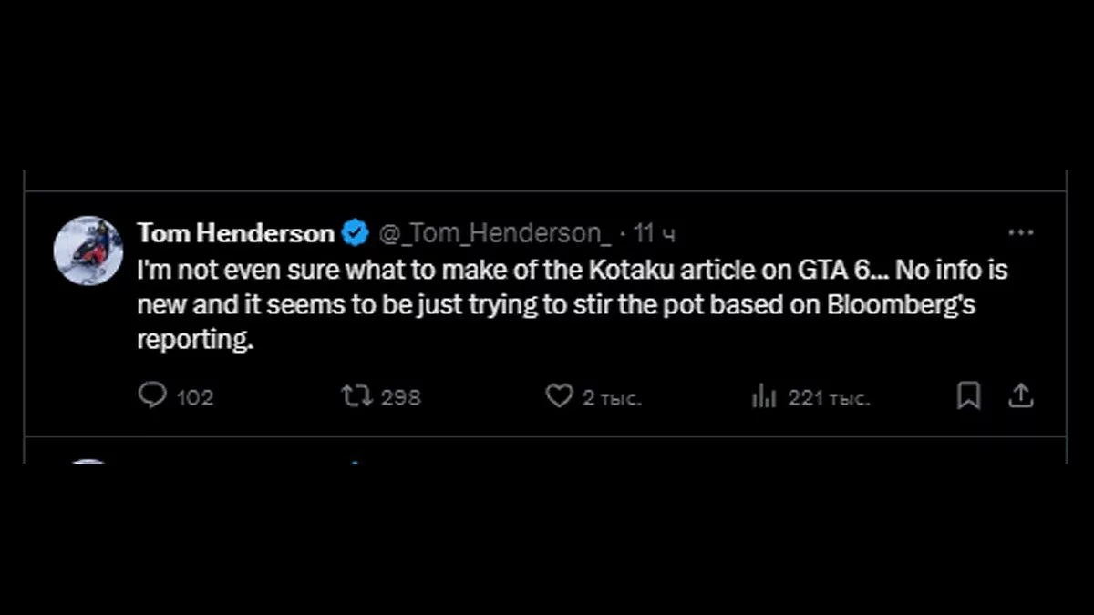 Журналист Том Хендерсон опубликовал в соцсетях пост в ответ на материал Kotaku: