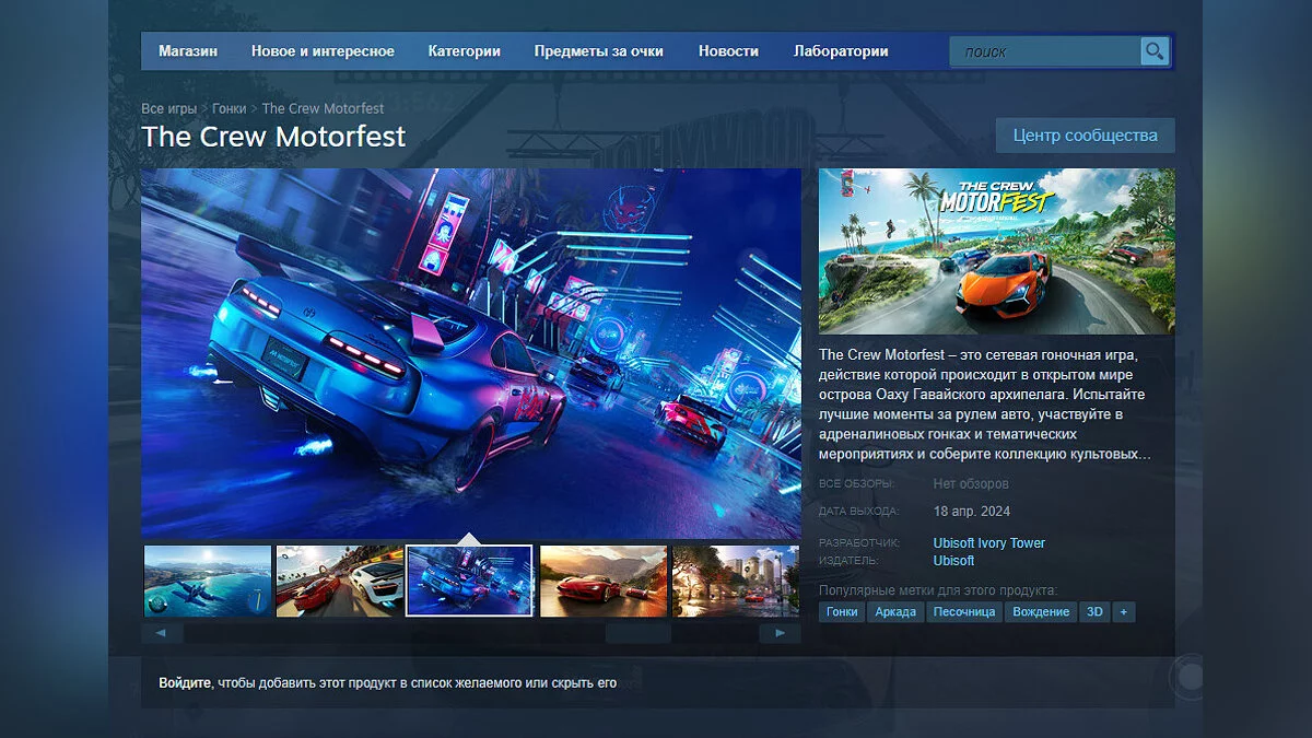 ПК-версия гонки The Crew Motorfest, которая сейчас доступна только в Epic Games Store и Ubisoft Connect, доберётся до Steam 18 апреля. В сервисе Valve уже появилась страница игры.