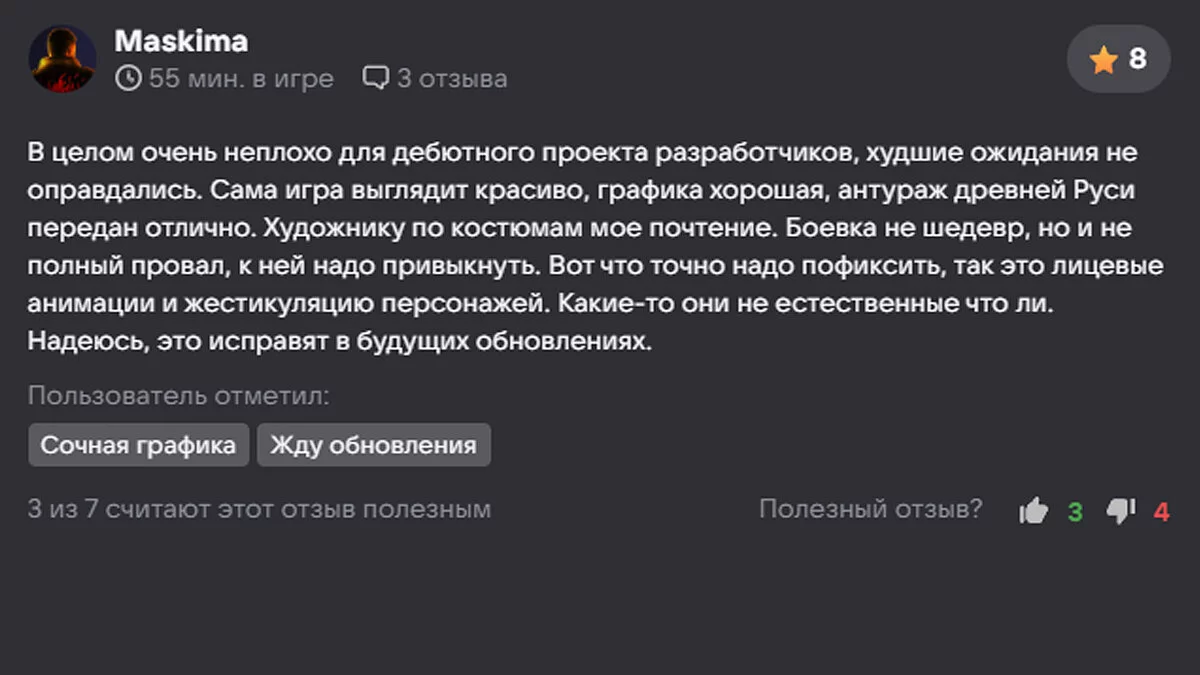 На момент написания статьи рейтинг «Смуты» в VK Play еще не появился, однако соотношение хороших и плохих отзывов составляло 191 к 87.